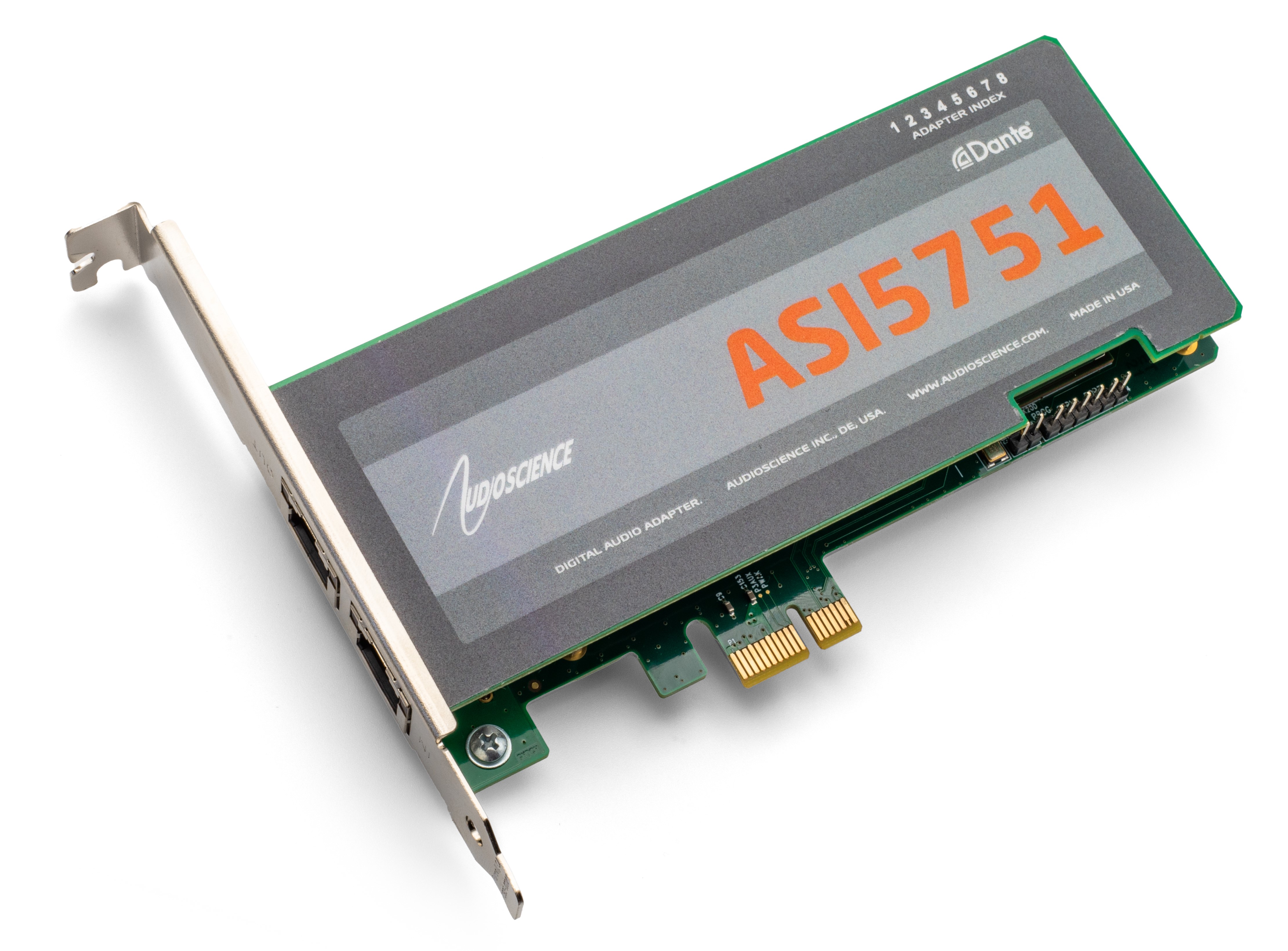 The ASI5751 and ASI5752 provides Dante inputs and outputs on Gigabit Ethernet in a small form factor half height PCIe card. They support both Windows and Linux operating systems with the ability to have up to 8 cards in 1 system to maximize capacity.