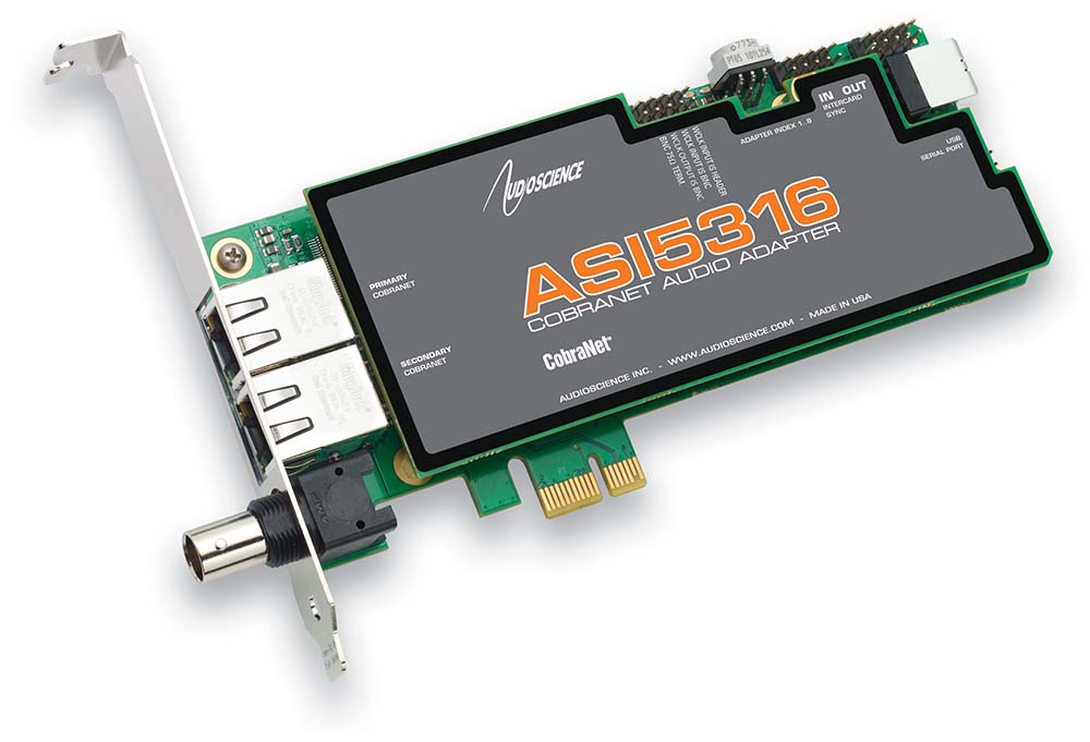 The ASI5308, ASI5316, and ASI6316 are professional PCI Express CobraNet sound cards designed for use in the installed sound and entertainment markets.