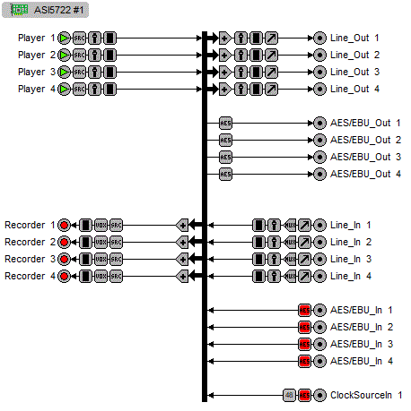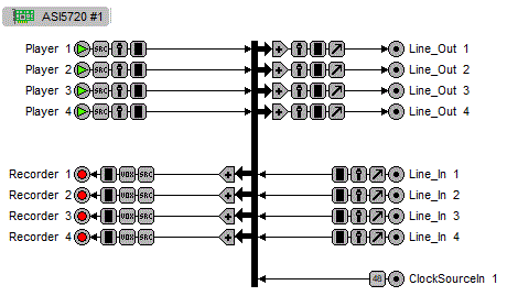 Providing up to 6 play streams that are mixed to 2 balanced stereo outputs and 4 record streams fed from 2 balanced stereo inputs, the ASI572x series features AudioScience's unique "anything to anywhere" mixing and routing.