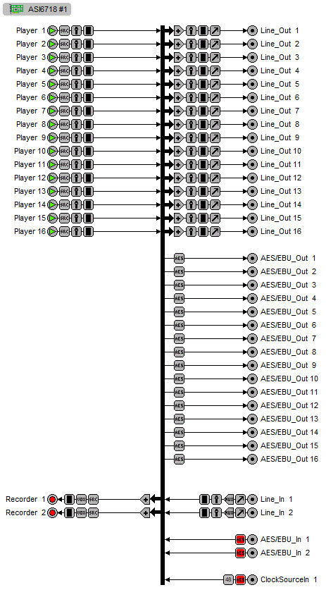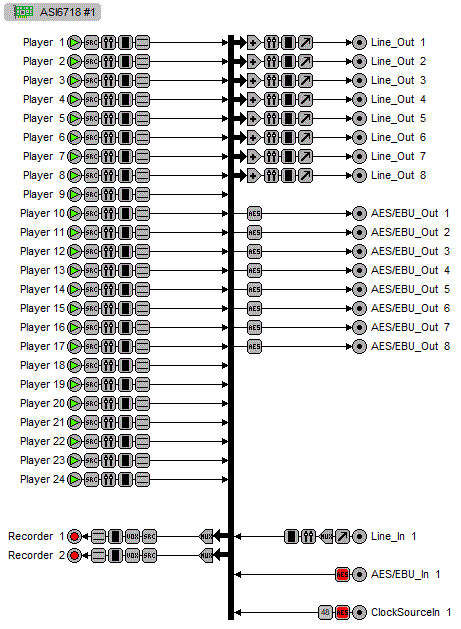 Providing up to 16 play streams that are mixed to 4 (ASI6714) or 8 (ASI6718) stereo outputs and up to 2 record streams fed from one stereo input, the ASI6714 and ASI6718 feature AudioScience's unique "anything to anywhere" mixing and routing.
