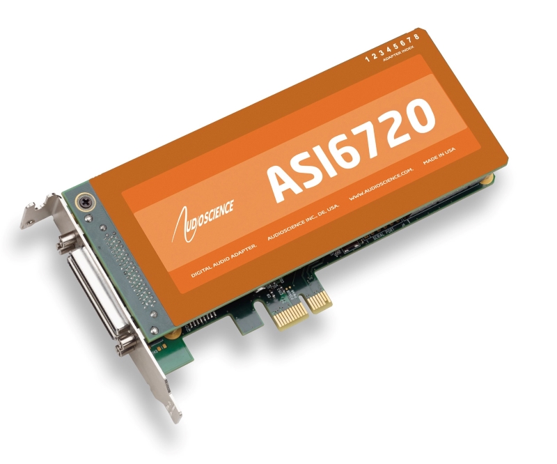 The ASI6720 and ASI6722 are professional low profile PCI-Express sound cards designed for use in radio broadcast automation.