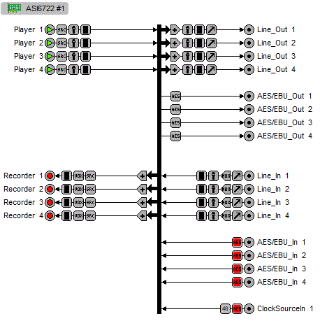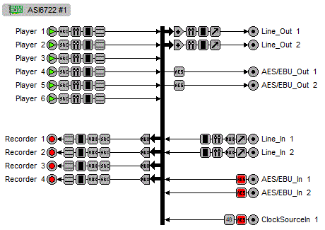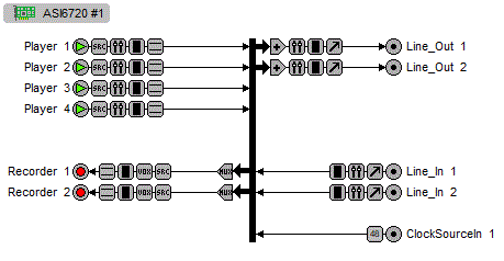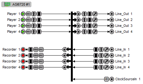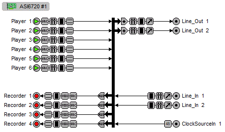 Providing up to 6 play streams that are mixed to 2 balanced stereo outputs and 4 record streams fed from 2 balanced stereo inputs, the ASI6720 and ASI6722 feature AudioScience's unique "anything to anywhere" mixing and routing.