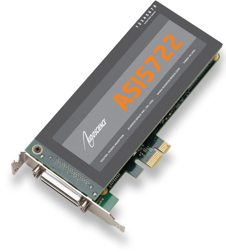 The ASI5720 and ASI5722 are professional Low Profile PCI-Express sound cards designed for use in the installed sound, entertainment and broadcast markets.