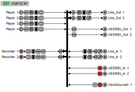 Providing up to 6 play streams that are mixed to 2 balanced stereo outputs and 4 record streams fed from 2 balanced stereo inputs, the ASI6720 and ASI6722 feature AudioScience's unique "anything to anywhere" mixing and routing.