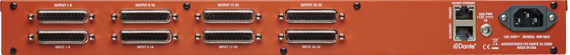 | Iyo Dante 32.32MD | 32 | 32 | Balanced Mic/Line | Balanced Line |