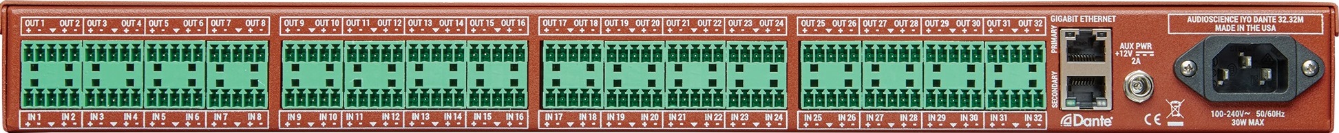 | Iyo Dante 32.32MR | 32 | 32 | Balanced Mic/Line | Balanced Line |